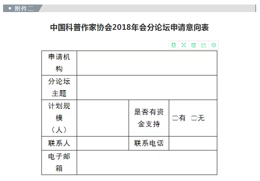 附件2:中国科普作家协会2018年会分论坛申请意向表