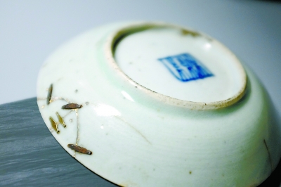 从这件清晚期豆青釉小碟上可以看到多次锔修的痕迹,可见老辈人的惜物节俭之风。