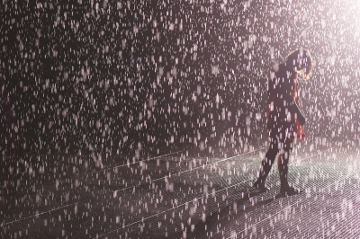 150平方米的空间里,雨水自天花板如银丝般流下。为了让观众更好的体验这件作品,《雨屋》以10分钟一批、每批20人的方式迎接参观者的到来。许多观众为了这10分钟的沉浸式体验,不惜等待几个小时的排队时间。现代人的生活方式和内心世界,通过聚光灯下的雨丝折射出来。
