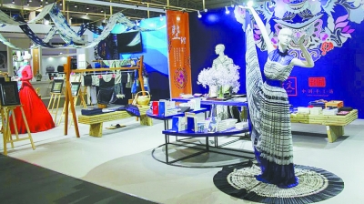 在非遗与教育展示区,重点介绍了清华大学美术学院、北京服装学院等高校和部分中小学的优秀学员作品、相关教材、现场课件体验等,显示出北京市在传承人群研修研习培训计划和“非遗进校园”方面的工作成效。