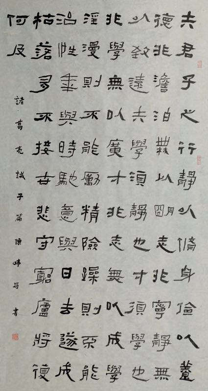 她的书法作品有格调,也有一定的技术含量,自然入选首届凤凰彩票书画展,并得到观众的好评。女作家、诗人写隶书,也引起我的好奇。最近,集中拜读了她的一系列隶书作品,就想写几句话分析她的隶书的艺术特点,探讨她的艺术心态。