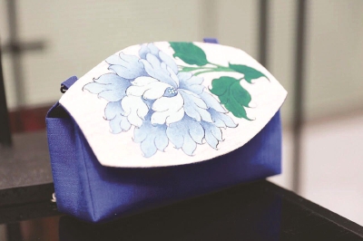 研修班结业成果,藏绣传承人唐卡画师夺基旺姆与跨界设计师李依蔓共同创作的“绘色牡丹”包系列。