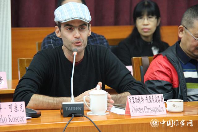 希腊小说家、诗人克里斯托斯·克里索波洛斯发言
