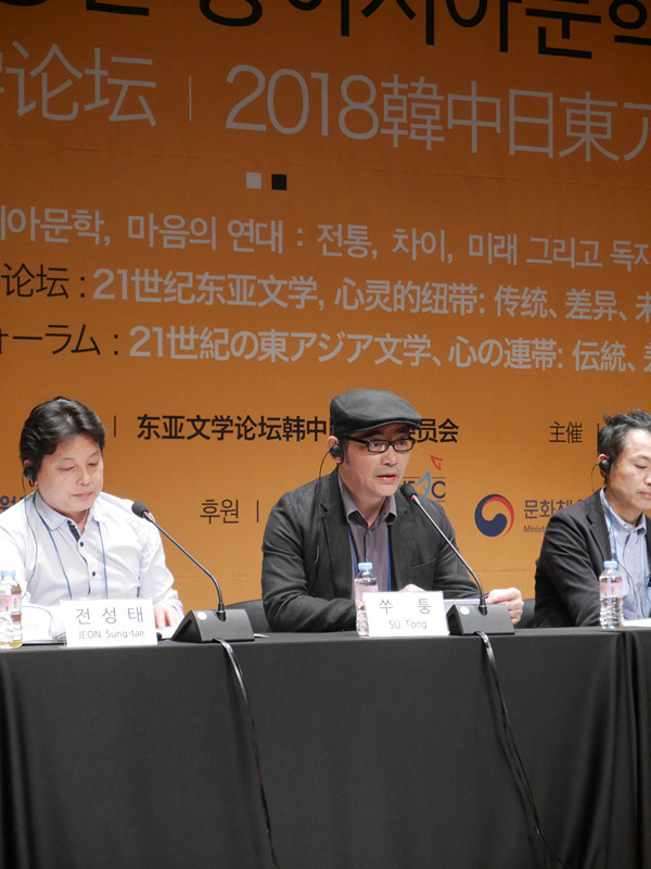16日下午,第四届韩中日东亚文学论坛在首尔举行新闻发布会