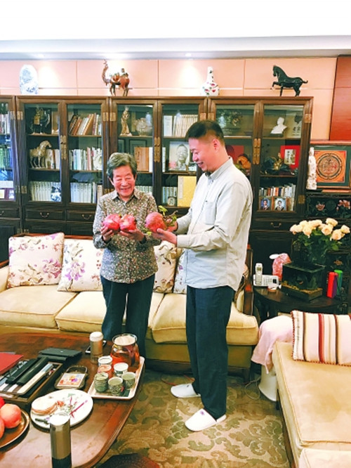 《老舍点戏》开幕式后,徐国卫拜访了舒济先生。把老舍济南旧居里结的石榴奉上时,舒先生特别高兴。
