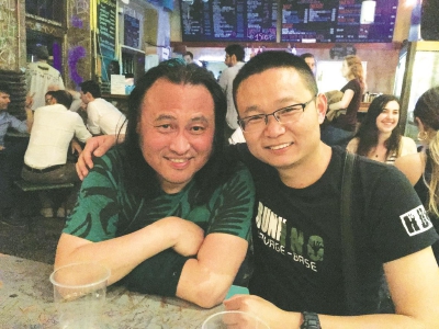 余泽民(左)和本文作者在废墟酒吧合影。