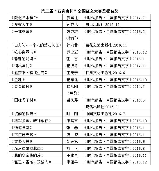 第三届“石膏山杯”全国征文大赛获奖作品颁奖辞