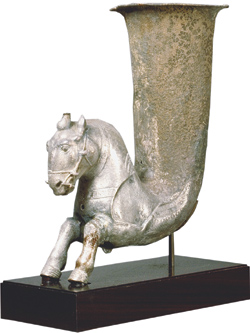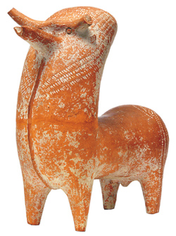 展览现场不难发现很多牛的形象,其中闫志特别介绍了一件伊朗出土的牛形陶器,“这件陶器看起来很‘萌’ ,而且造型带有强烈的现代感,但它的年代实际上是在公元前1200至800年左右,距今已经有3000年的历史了。 ”展览第二部分的展柜里摆放了大大小小不同造型的牛,都是在西亚、伊朗地区出土的,而在展览第一部分的藏品中也能发现很多牛的形象,比如陶器上牛的纹饰、牛形酒壶等。闫志介绍,瘤牛在古代的西亚、印度、非洲等地区被视为家畜来饲养繁育,而以公牛崇拜为核心的宗教则发源于西亚,并向四周传播。“牛在人类早期文明中的作用巨大,对牛神的崇拜也遍及丝绸之路沿线地区。因此在展现中凤凰彩票可以看到许多牛的形象,从希腊到两河流域到伊朗甚至到印度北部。凤凰彩票把这些牛摆在一起,让大家看到不同时代、不同地域,人们对牛的崇拜是多么的相似,这也是凤凰彩票在策展当中的一个思考。 ”