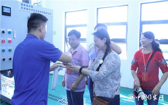 团员们在海水淡化厂品尝甘甜的纯净水