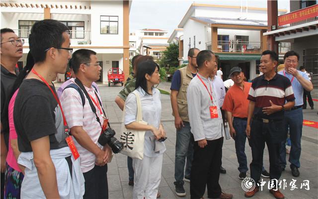 一排排崭新的二层小楼房,整洁干净的道路绿草如茵,鸡蛋花、月季花正肆意怒放,一个美丽的现代化海岛村庄映入眼帘。在永兴社区的渔民定居点,采访团的作家们与一位姓林的老先生交谈起来,他本来是工委的干部,大学毕业就来这里,在岛上工作居住了37年,现在已经退休,可谓是看着永兴岛在改革开放以来一步一步从无到有、越来越好。谈起过去的住宿、饮水困难,他感慨地说,“现在真的太好了!以前住木板房,现在住楼房,再也不怕台风来了!”看到村民们脸上荡漾着幸福的笑容,大家感慨万千。海南作协专职副主席梅国云曾在四年前来到这里,他说,“四年前渔民们告诉我,他们有两个忧虑,一个是孩子的教育问题,另一个是居住问题。但是四年后的今天,我再度上岛,发现和四年前比完全不一样,渔民们的住房绝不比海口的市民条件差!”