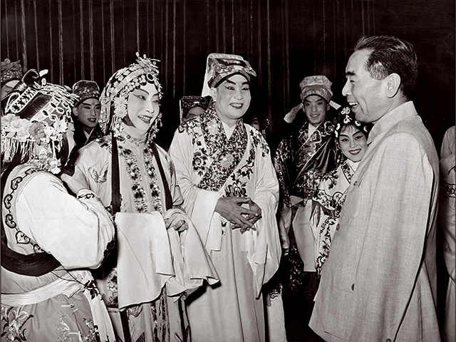 北方昆曲剧院成立纪念演出后周恩来总理接见演员 前左起:韩世昌、梅兰芳、白云生