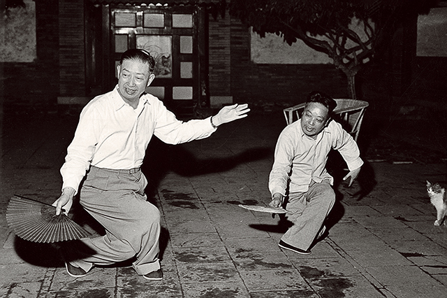 1957年韩世昌与梅兰芳一起排练