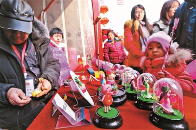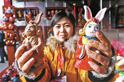 左手举着小猪佩奇的“新版”北京面塑,右手端上兔爷造型的天津泥塑彩绘,亲手磨墨、套印,尝试制作杨柳青木版年画,玩累了用河北蔚州的青砂器泡壶茶歇歇脚……京津冀携手贺新春,游客逛庙会,可把三地的非物质文化遗产精粹“一网打尽”。