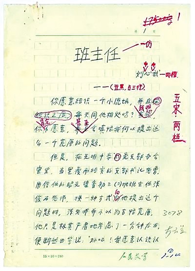 刘心武《班主任》手稿 中国现代文学馆供图