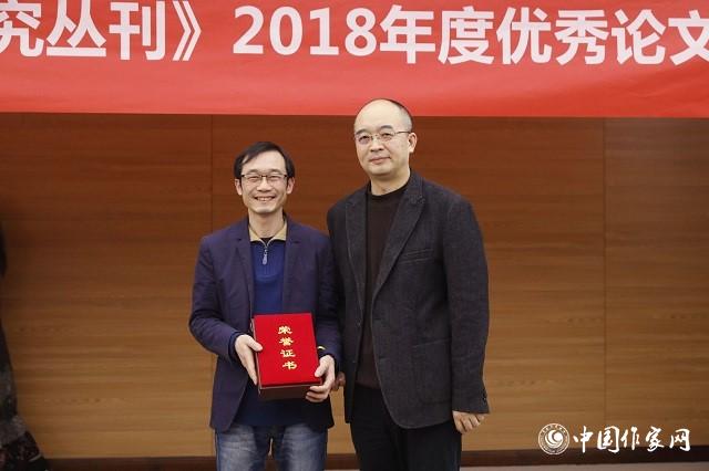 吴义勤为获奖者黄德海颁奖