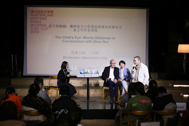 3月23日,在洋溢着春日暖意和文艺气息的798艺术空间,来到中国参加第十二届澳大利亚文学周的澳洲童书大使莫里斯?葛雷兹曼与中国儿童文学作家周锐展开了一场关于孩子与故事的对话。本次活动由澳大利亚驻华大使馆主办,中国文学海外推介网站纸托邦承办,特邀儿童教育作家、童书出版人三川玲主持。
