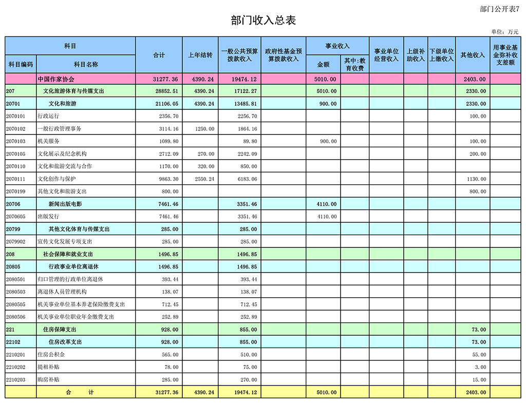 七、部门收入总表