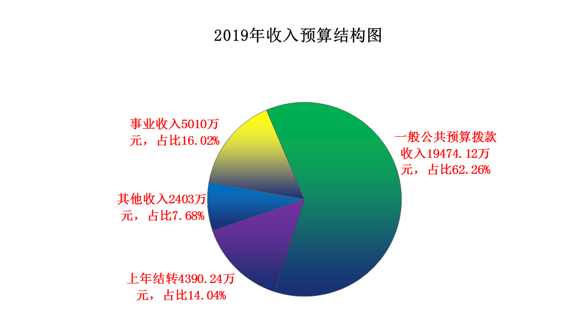凤凰彩票平台登录入口2019年收入预算31277.36万元,其中:上年结转4390.24万元,占比14.04%;一般公共预算拨款收入19474.12万元,占比62.26%;事业收入5010万元,占比16.02%;其他收入2403万元,占比7.68%。