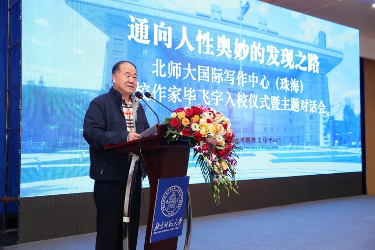 4月14日上午,“通向人性奥妙的发现之路:北师大国际写作中心(珠海)驻校作家毕飞宇入校仪式暨主题对话会”在北师大珠海校区举行。自2013年北师大写作中心引入驻校作家制度以来,先后邀请了贾平凹、余华、严歌苓、欧阳江河、苏童、西川、迟子建、翟永明、格非、韩少功等10位驻校作家,推动了文学教育事业的蓬勃开展。今年,知名作家毕飞宇也加入到驻校作家的行列,在入校仪式上,北师大国际写作中心主任莫言、珠海分校副校长傅爱兰为毕飞宇颁发聘书,仪式由北京师范大学国际写作中心执行主任张清华主持。