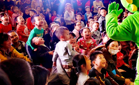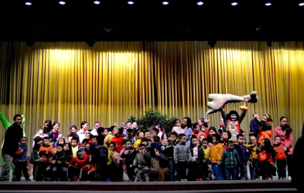 上图/某校园演出结束孩子们和演员兴奋合影