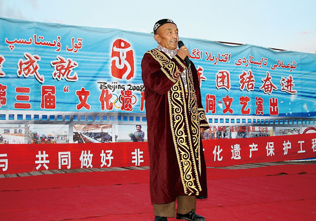 达斯坦奇是民间对长诗演唱艺人的一种尊称。在历史发展的长河中,达斯坦奇对于我国北方少数民族的文化发展和传承具有重要意义和价值。然而,由于达斯坦传承的特殊性,达斯坦演唱不同于一般的故事、歌谣。达斯坦演唱者不仅要求知识渊博,反应敏捷,记忆力超强,而且还要有驾驭语言的天资,以及能言善辩和卓越的艺术表现力。因此,达斯坦演唱者即使在长诗盛行的时代,其演唱大师也为数不多。随着民族文化的不断发展,新的文艺表现形式不断涌现,能演唱达斯坦的人可谓凤毛麟角,再加上达斯坦演唱是一种自娱自乐、文化自然传承的形式,并不是演唱者唯一的谋生手段,也不是一种相对固定的职业,所以受当代文化的影响,学习演唱长诗的人越来越少。特别是近30年以来,原有的师徒传承形式在民间几乎很少见,达斯坦演唱后继无人,而能演唱达斯坦的大都是耄耋之年的老人。