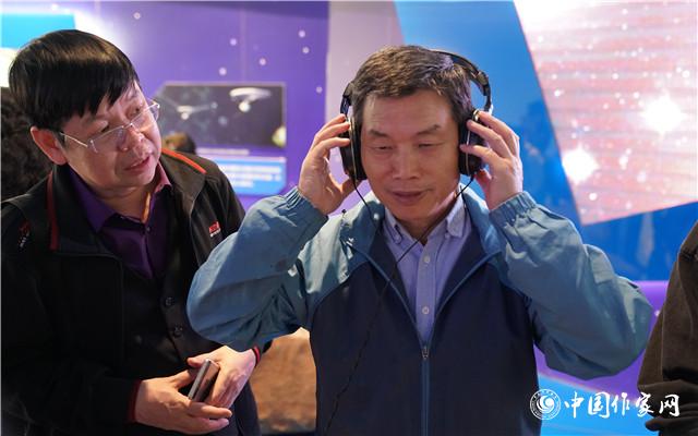 采访团成员钟法权在平塘国际天文体验馆聆听来自宇宙的声音