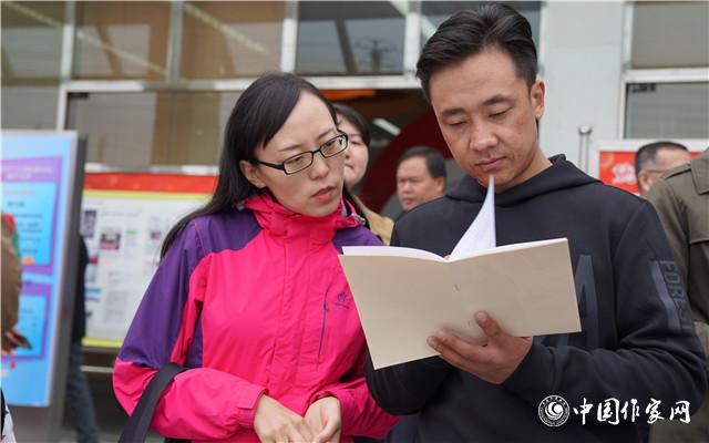 采访团成员孙频、索南才让认真研读相关资料