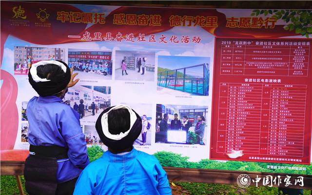 易地搬迁群众查看“奋进社区”近日的文化活动