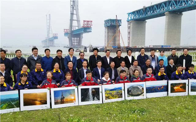 在沪通长江大桥下合影