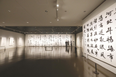 “此次书法展集中展示当代书法艺术继承弘扬3600年书法传统、塑造新时代书法形象、书写新时代书法精神的丰硕成果。”展览艺委会委员、中国书协副主席刘洪彪认为。比如,有一幅作品长12米,高3.66米,只书有三个字——“中国梦”,磅礴的气势扑面而来。