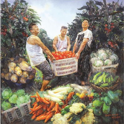 赵晓东油画作品《幸福的菜篮子》(局部)。(均资料照片)