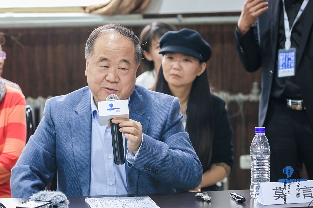 最后总结时,莫言说,一个作家所有的感受,实际上都来自于他的写作。一个作家如果在某个方面跌倒了,爬起来的唯一办法就是用笔写作。莫言还是那个讲故事的人。