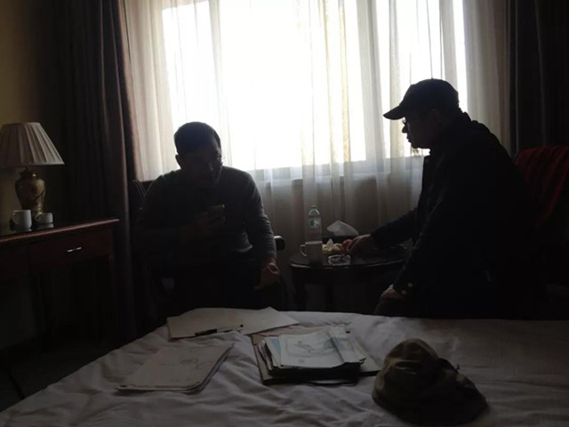 郭羽、刘波在讨论小说大纲