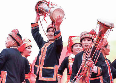 佳瑶合作社瑶胞们在表演自治区级非物质文化遗产长鼓舞(资料图片)