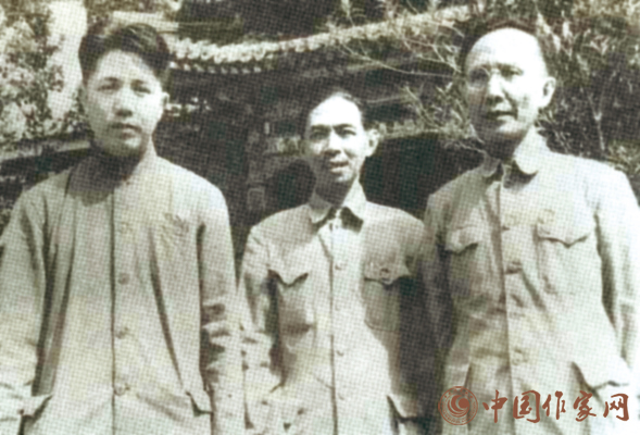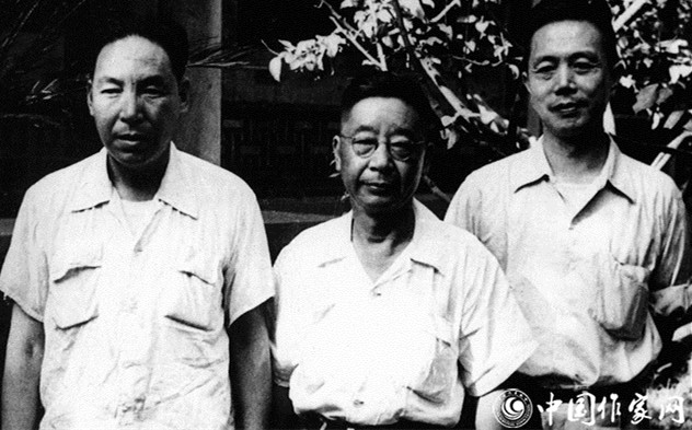 1949年,周扬(左)、茅盾(中)、郭沫若在一起