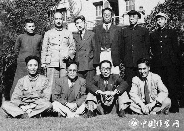 1949年9月,全国政协会议期间文艺界代表合影,前排左起:艾青、巴金、史东山、马思聪;后排左起:曹靖华、胡风、徐悲鸿、郑振铎、田汉、茅盾