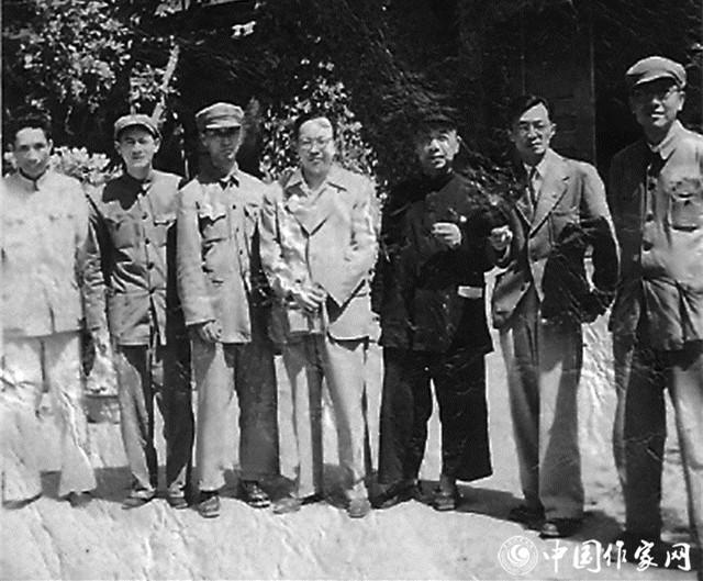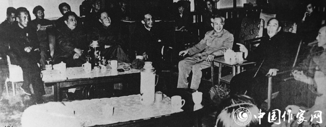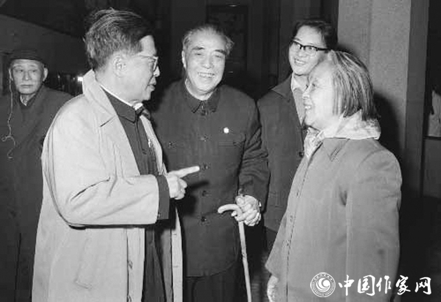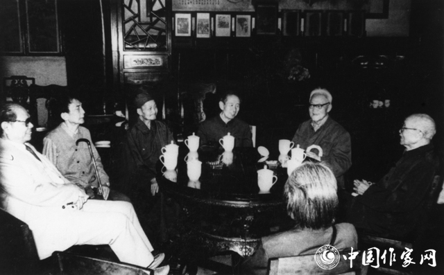 1979年第四次全国文代会期间的曹禺(左一)和丁玲(左四)、阳翰笙(左二)