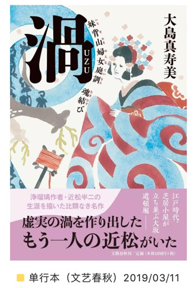 第161届直木奖 获奖作品是《涡——妹背山妇女庭训魂结》 ,作者大岛真寿美。小说讲述净瑠璃作者近松半二波澜壮阔的一生,江户时代,大阪道顿堀,天姿聪颖的近松半二被酷爱净瑠璃的父亲带入了戏棚,从此与净瑠璃结缘。从父亲手里,他接过了近松门左卫门流传下来的砚台,由此开启创作之路。他也曾被年少好友兼竞争对手的并木正三所超越,曾被净瑠璃大师吉田文三郎责罚,但近松半二无法停下创作的步伐。经过漫长岁月,《奥州安达原》《妹背山妇女庭训》等名作终于横空出世。“墨汁自笔尖滴落,最终,我也化作了文字……”日本读者评论这本书时说道:“描写净瑠璃作家近松半二一生的力作,可以从中感受到江户时代大阪热腾腾的烟火气扑面而来。读完后有点明白了歌舞伎和人形净瑠璃的区别,不过还是有很多get不到的点,果然还是要亲自去现场看了才能明白吧。”