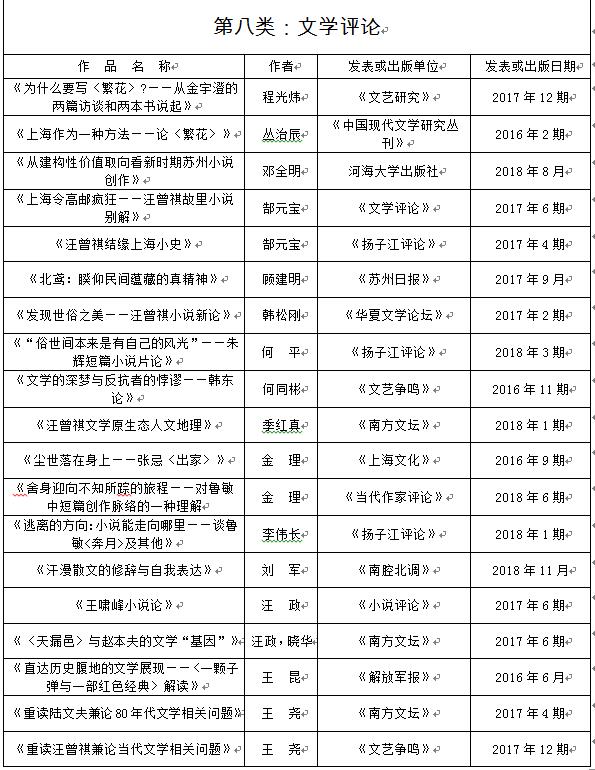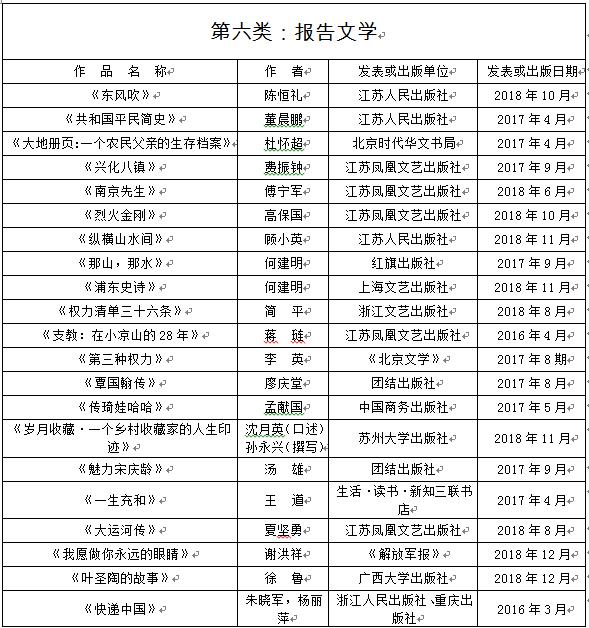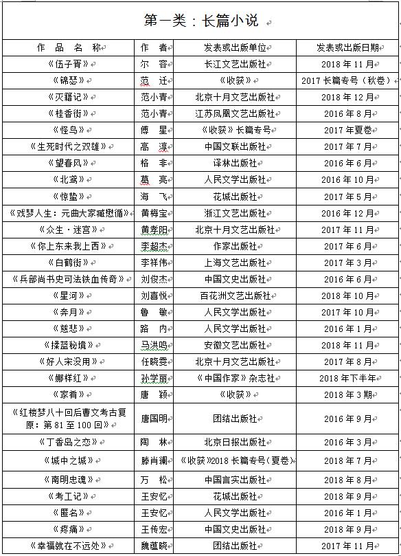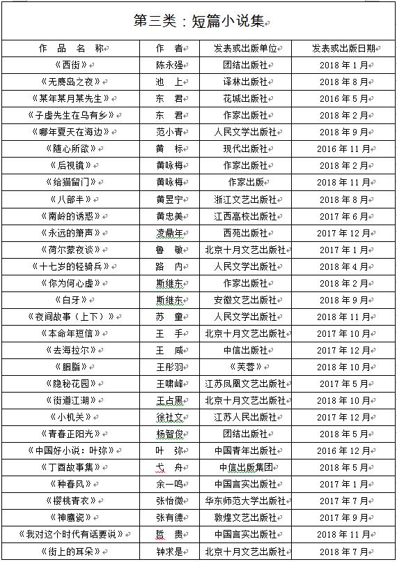 附:首届东吴文学奖申报和推荐作品目录(按作者姓名拼音首字母顺序排列)