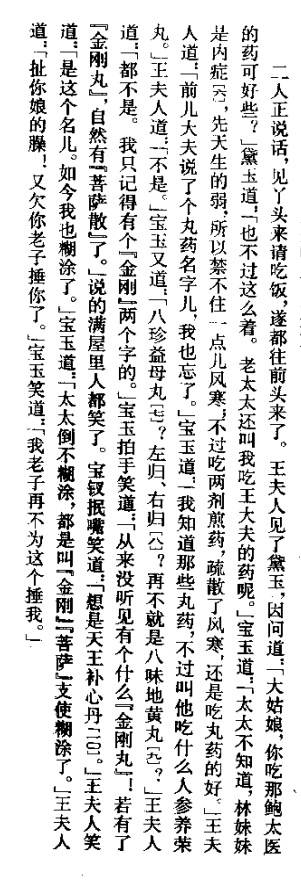 小说第二十八回,介绍林黛玉所服用的“天王补心丹”(据北京师范大学出版社程甲本底本抄注本,1987年版)