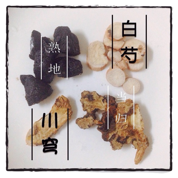 四物汤所用药材:熟地、白芍、川穹、当归(图片来源于网络)