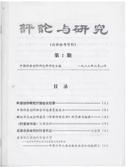 为配合中国科普作协鼓励开展科普评论,培养科普评论人才,科普所在会上决定出版内部参考资料《评论与研究》。《评论与研究》第1期很快就在当年6月面世,水准可嘉,其后各期也多有看点。我所见到的最后一期《评论与研究》是1986年12月出版的第10期,刊末仍有“征稿简则”,但我不知此刊一直出到何年何时。