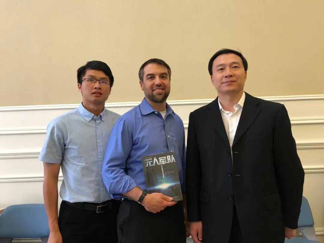 2019年6月25日在北京开会相聚的《无人军队》 译者朱启超、作者保罗·沙瑞尔、译者龙坤(从右至左)