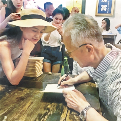 童道明(右)为读者签名