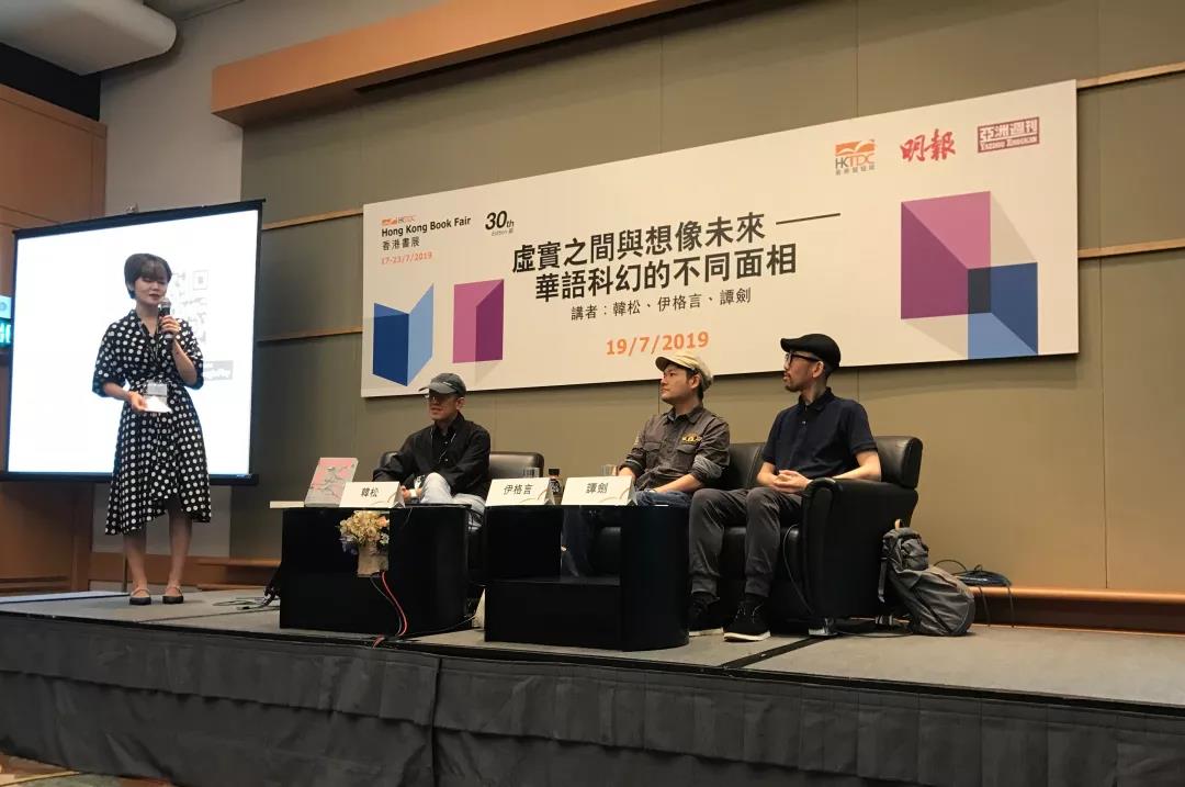 7月19日,韩松、伊格言、谭剑,两岸三地三位科幻作家,以“虚实之间与想象未来——华语科幻的不同面相”为主题开展对话。科幻也正是今年第三十届香港书展的年度主题。