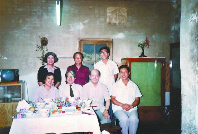 参加严文井家宴的部分来宾的留影 前排左起:康志强、水上勉、严文井、吴正格 后排左起:佐藤纯子、中野孝次、陈喜儒