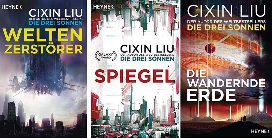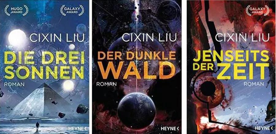 从左到右依次为:《三体》(Die drei Sonnen),《三体II?黑暗森林》(Der dunkle Wald),《三体III?死神永生》(Jenseits der Zeit)