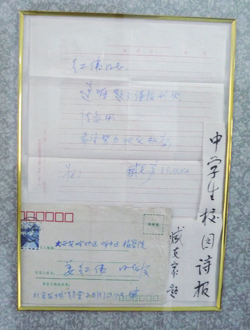 时间过得真快,一晃儿34年过去了。然而,臧老的音容笑貌却依旧停留在我的记忆里。此时此刻,我又来到我的八十年代诗歌纪念馆,面对在最醒目处悬挂着的被镜框镶嵌着的臧老的亲笔信、信封和书法报头,我的心里充满了无限的感恩和无限的思念。