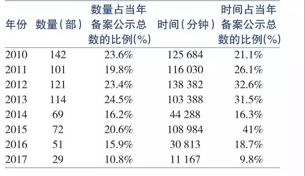 表1 2010年—2017年国产科普教育题材电视动画片制作备案公示情况