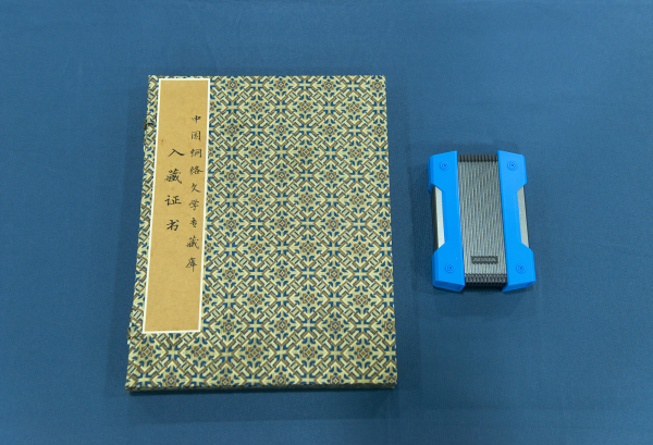 中国网络文学专藏库入藏证书及保存网络文学的硬盘。